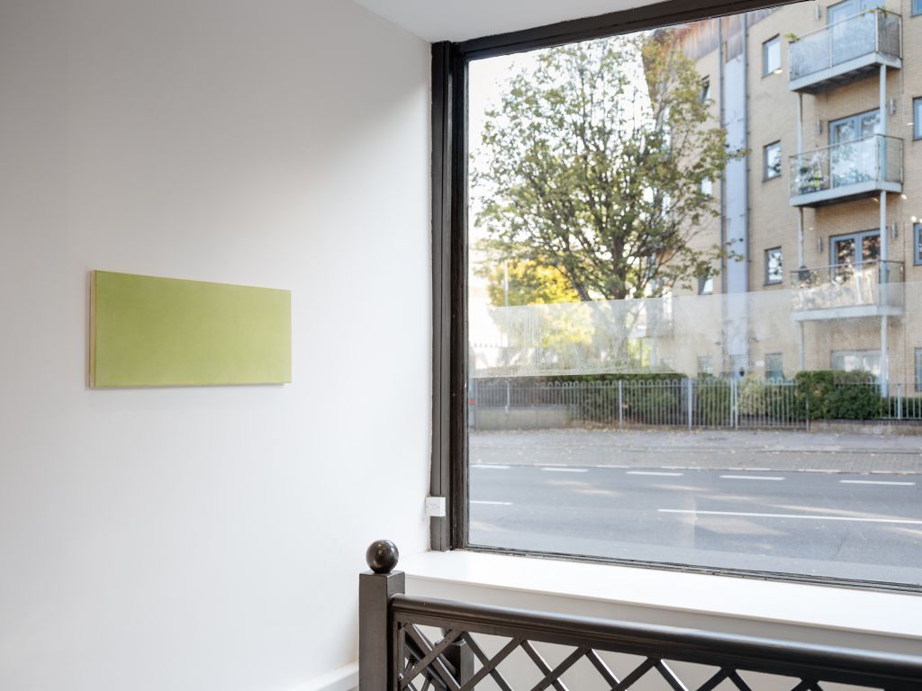 In the first room in the gallery, a constellation of taut silver wires strung between floor and ceiling picks up the thematic concern with light for the material’s association with photography. The work also points to the influence of Fred Sandback, whose yarn sculptures delineate geometric volumes of air, heightening viewers’ attention to their surroundings, particularly negative space. Two canvases coloured with chlorophyll, meanwhile, bring to mind artistic practices which do not seek to overcome but rather make a feature of decay. We might think, for example, of Shelagh Wakely, who gilded fruit that rotted over the course of an exhibition (while still retaining its golden lustre) and scattered powdered turmeric over the floor, its pungent fragrance fading with time. At the start of the exhibition, Tozer’s chlorophyll canvases are a deep, unmistakably vegetal green. By the end, that vibrant colour will be subdued.